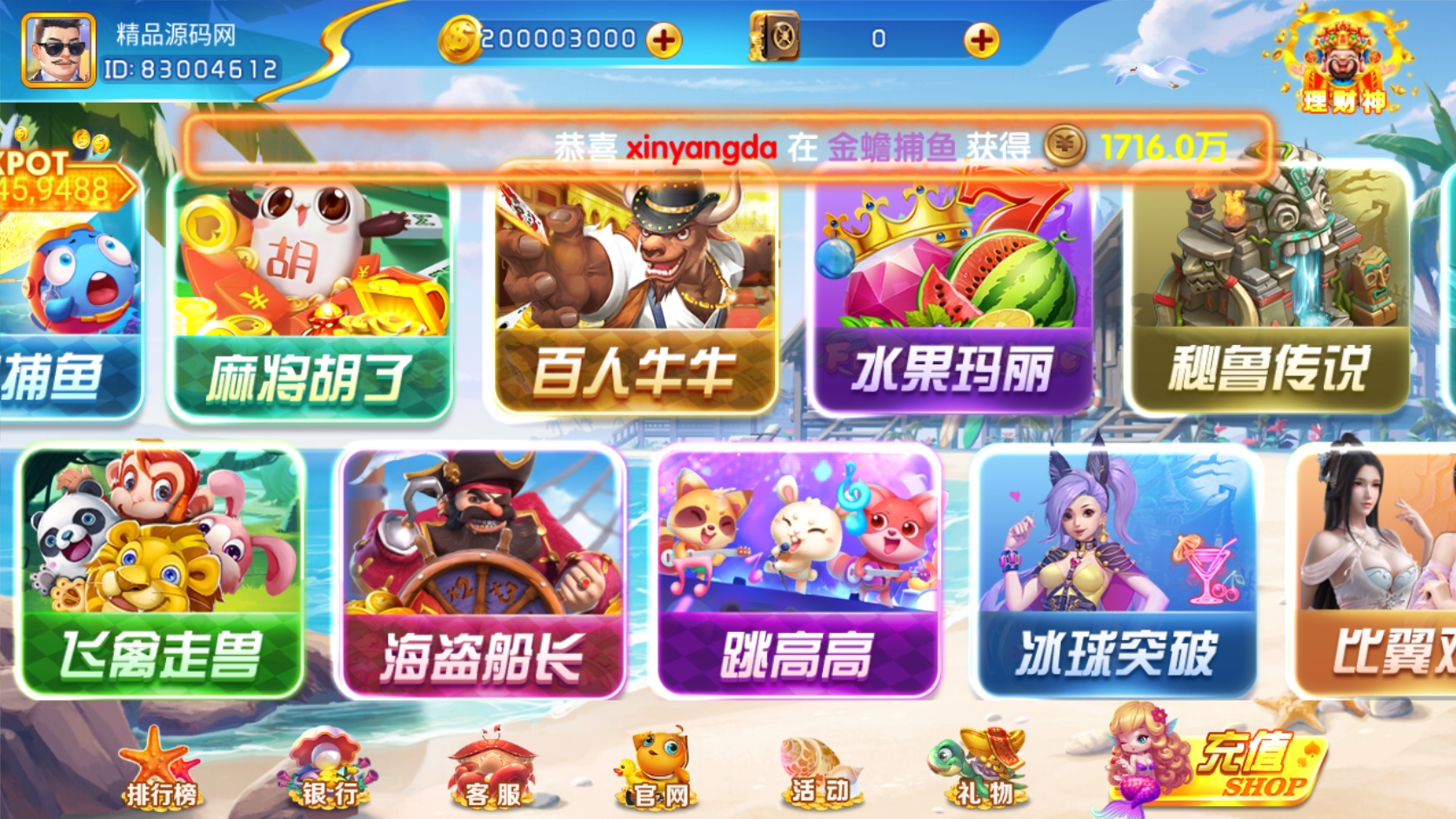 包含游戏:李逵劈鱼 大闹天宫 万炮捕鱼 摇钱树捕鱼 金蟾捕鱼 麻将糊了 飞禽走兽 百人牛牛 海盗船长