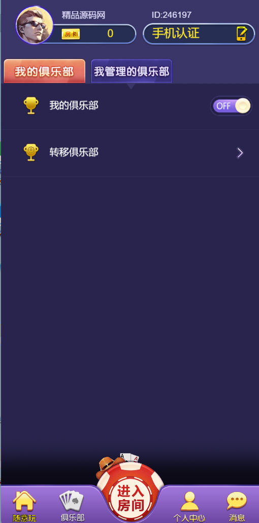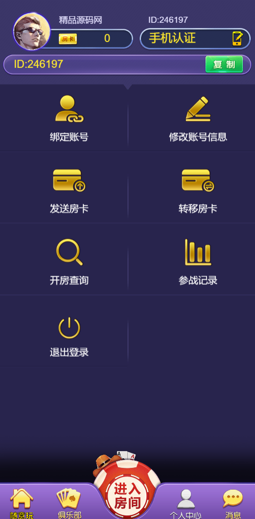 站长亲测随意玩带免授权带控制功能,登陆可以用注册或者回调微信登陆。非常不错的一款房卡游戏。官方版本是没有控制的