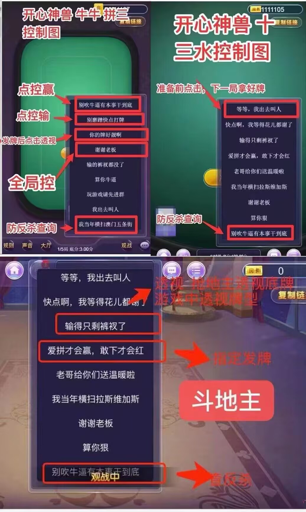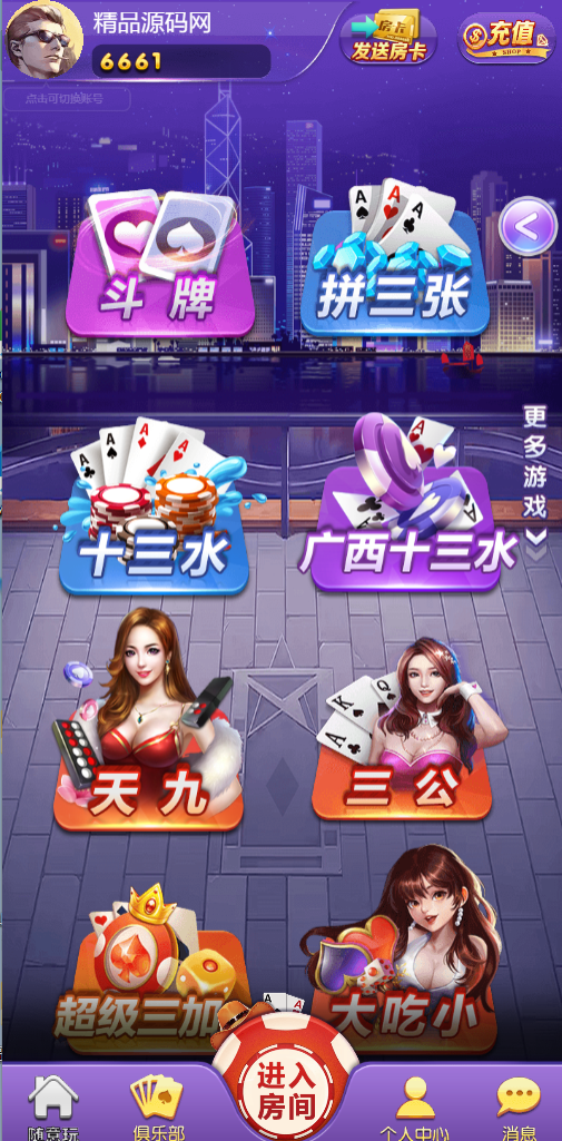 一共四个游戏,牛牛、金花、十三水、斗地主全带控制。游戏模式是房卡+积分双模式。他的价值不用多说,懂得都懂!