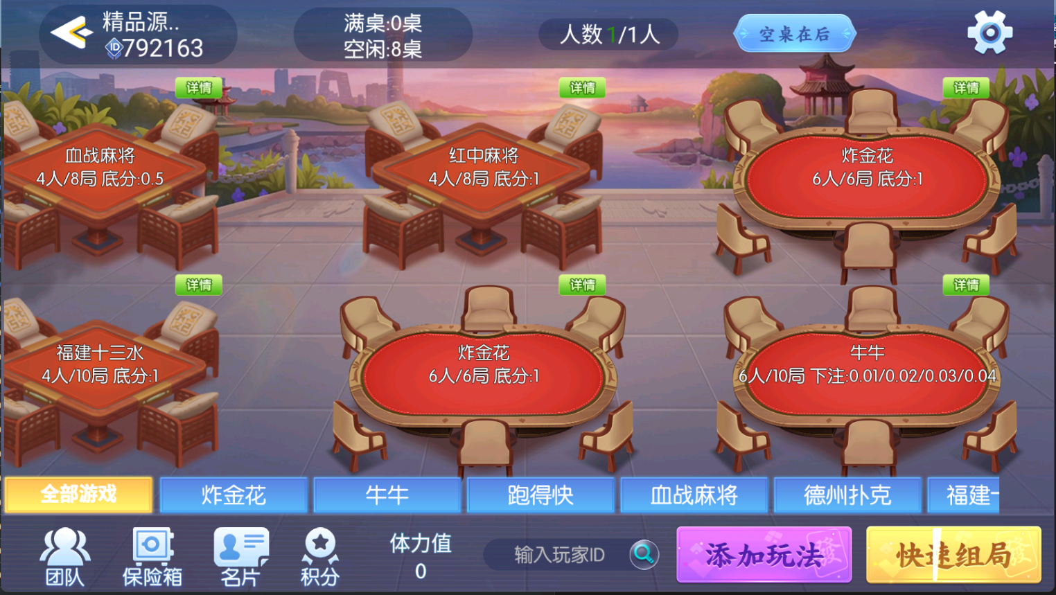 内置游戏:炸金花,牛牛,跑得快,血战麻将,德州扑克,红中麻将
