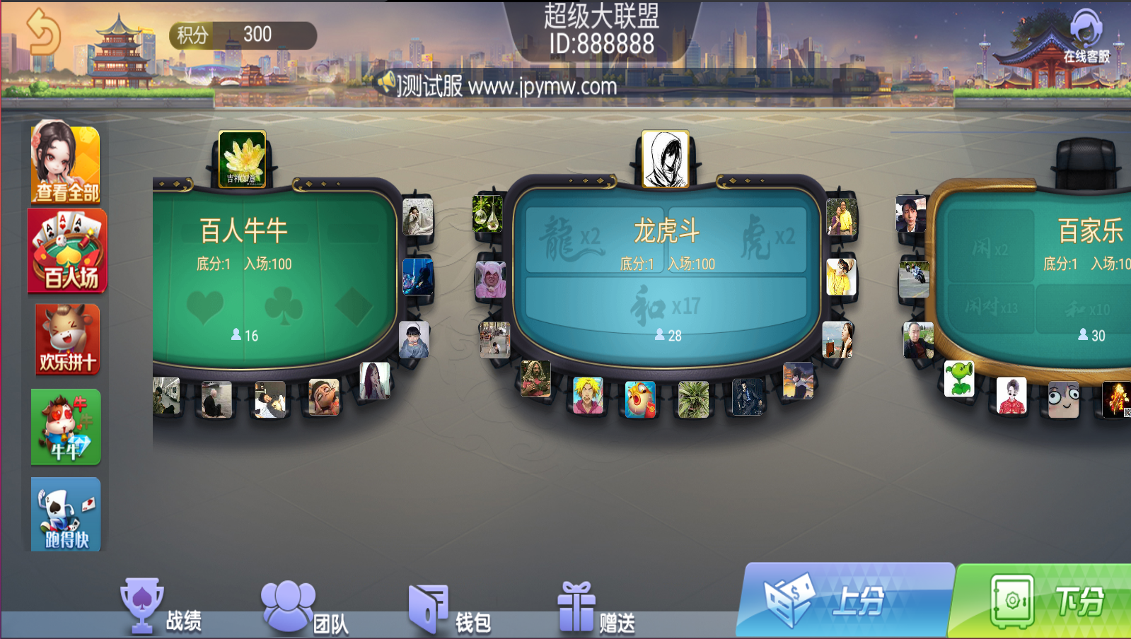 包含游戏:百人游戏:龙虎斗 扫雷红包 推筒子 百家乐 欢乐拼十 牛牛 红中麻将 跑得快 三公 跑胡子 炸金花 十三水 斗地主 血战麻将 山西推倒胡