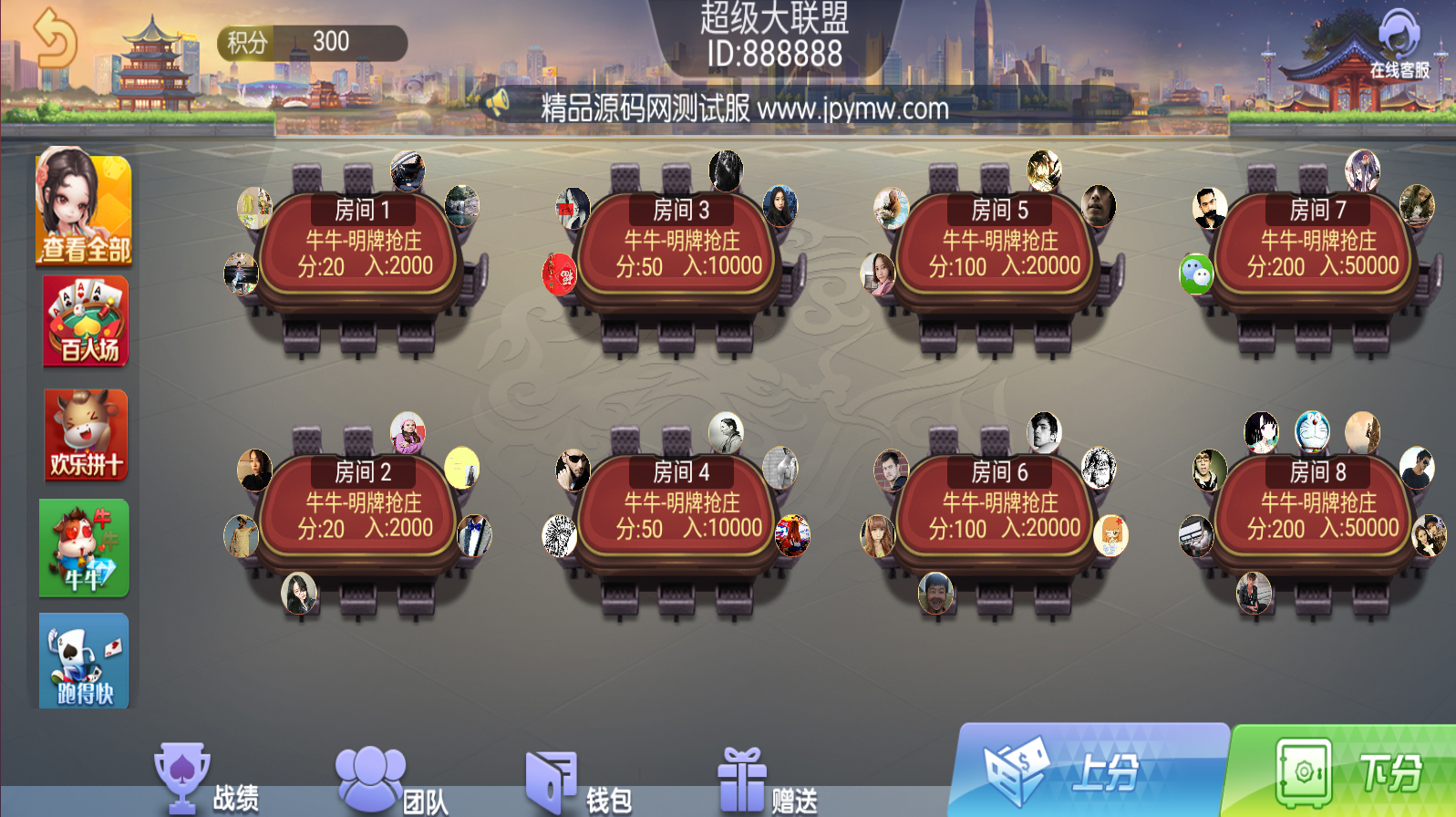 五游朋友圈金币场,带机器人,带控-百人场普通场多子游戏组件。