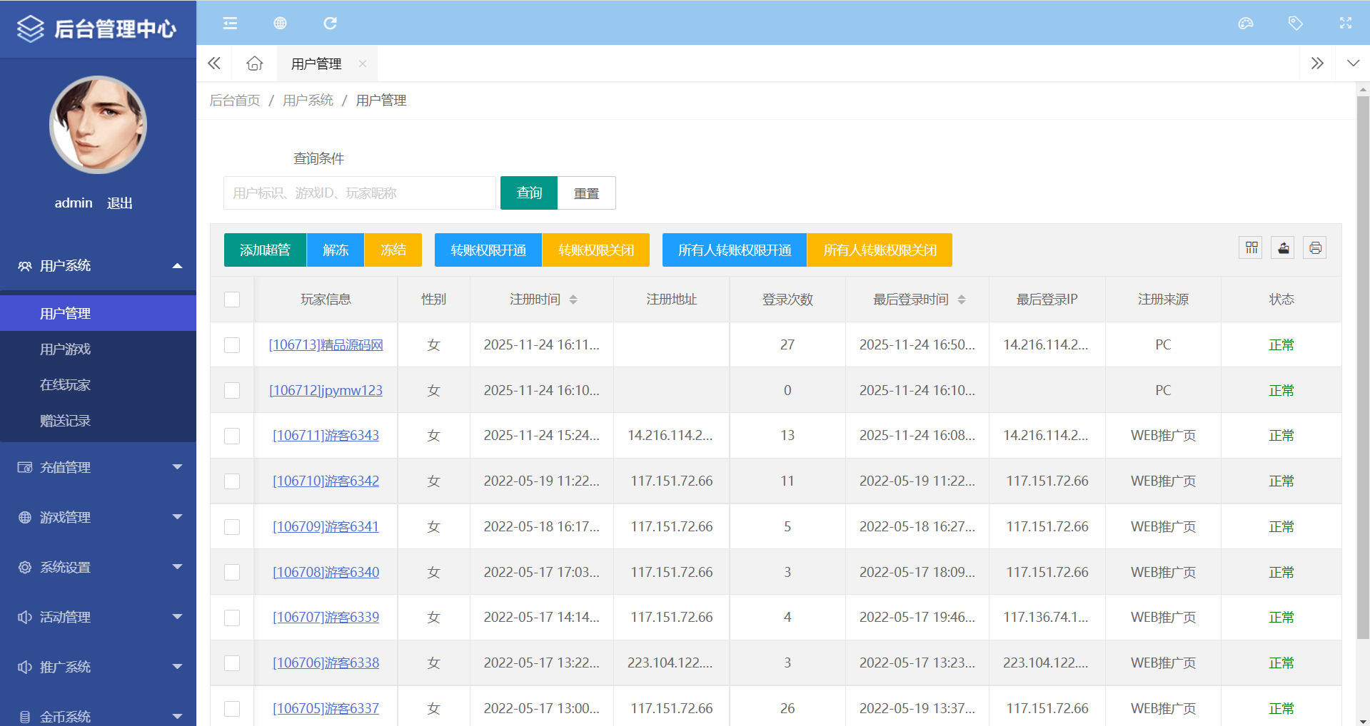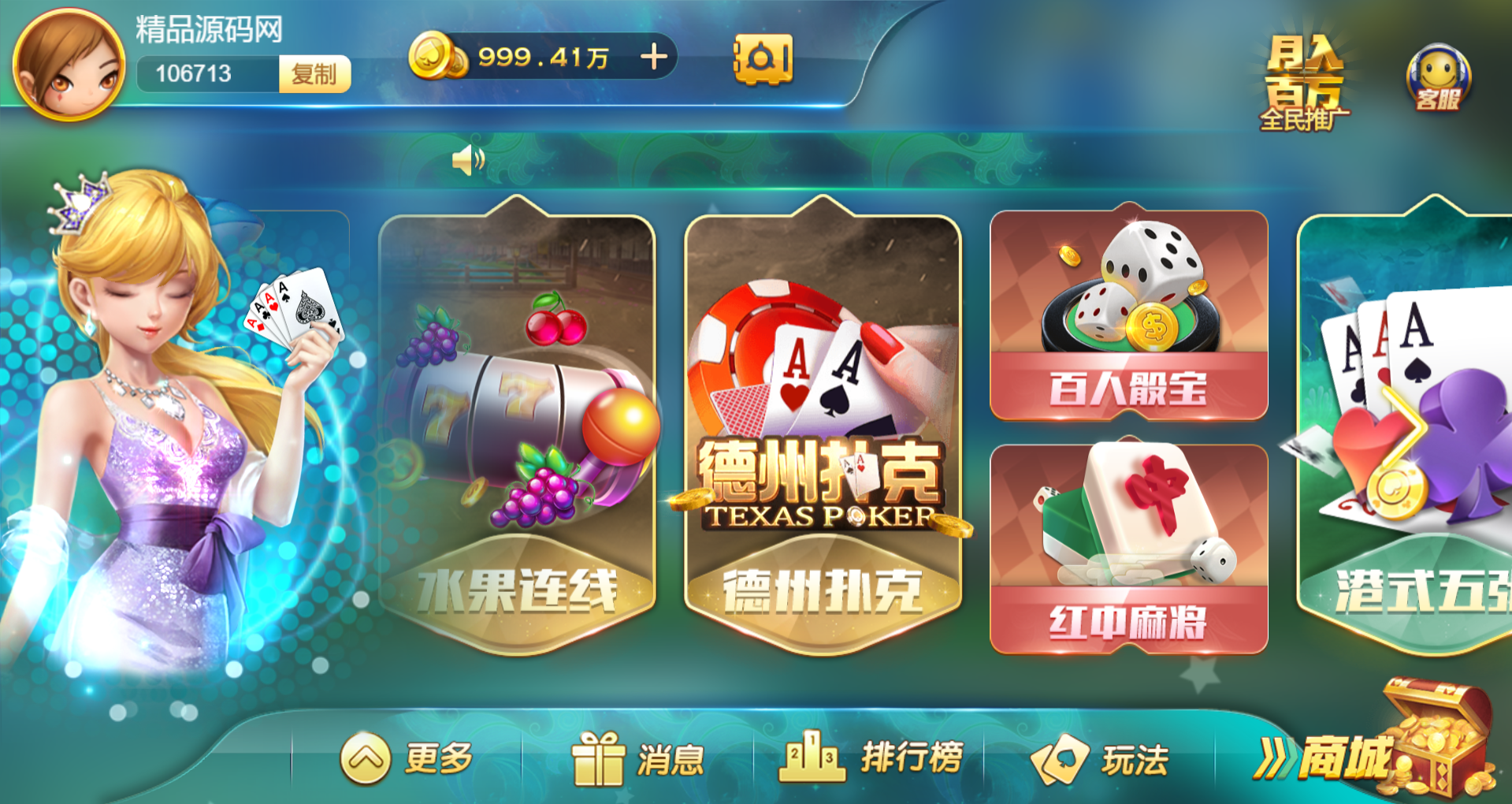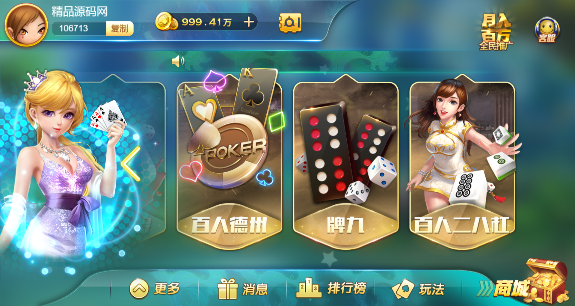 | 源码介绍: 网狐h5卓越版实测可以跑起来,游戏多,界面好看。不错,网狐H5卓越版本套为组件非源码。本套搭建非常简单。 站长亲测游戏都能玩,并且录制了详细的搭建教程 就算是刚入门的小白使用本站配套程序跟着本站教程,亦能成功搭建 严正声明:本程序仅提供研究便用,非法运营级导致法律冲突请自行负责!本站概不负责! 游戏简介: 电玩:捕鱼达人、飞禽走兽、水果连线、水果玛丽 棋牌:八人牛牛、斗地主、狂三张、百人牛牛、30秒、红黑大战、龙虎斗、百人骰宝、、百人德州、牌九、百人二八杠、港式五张、三公、推筒子、十三水 麻将:广东麻将、德州扑克、红中麻将、血战麻将。 运行环境: windows2012 亲测截图: ![]() |