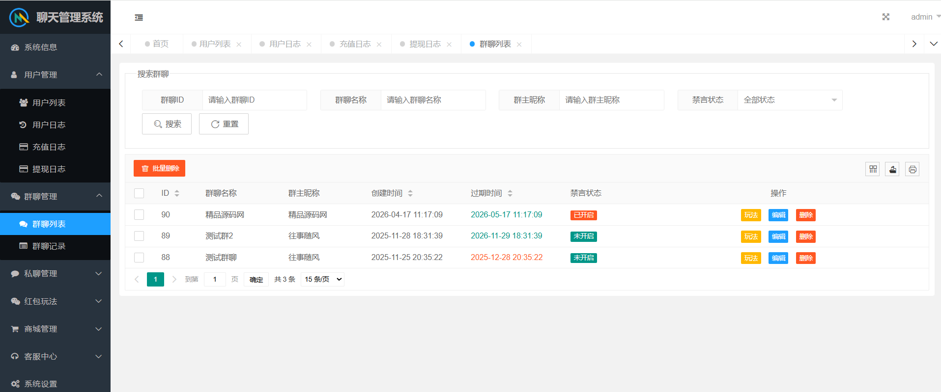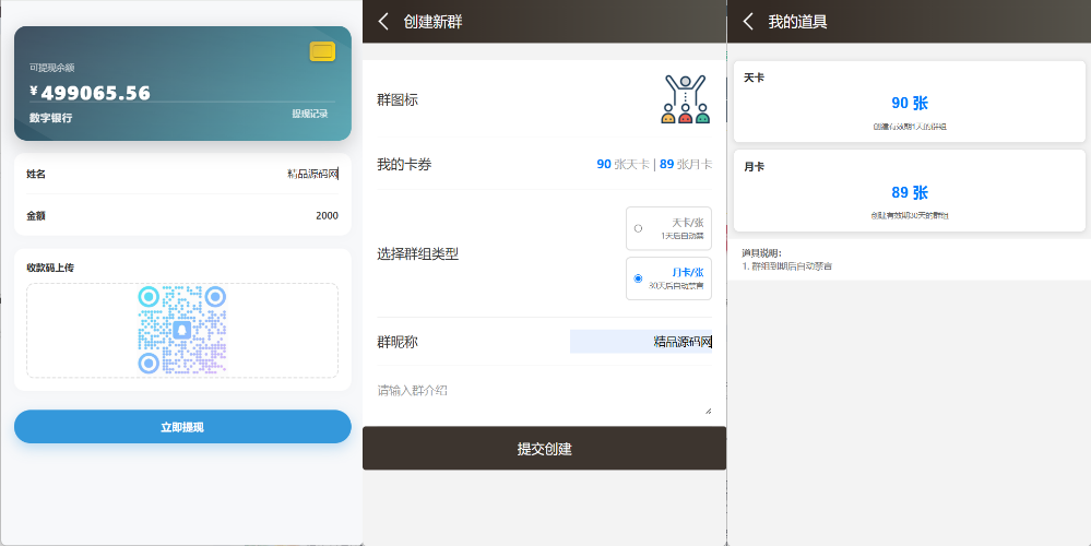 对接了易支付接口,建群需要卡片,有天卡和月卡两种,到期后群聊自动禁言,所有功能都不可用,也可在后台设置群聊过期时间。