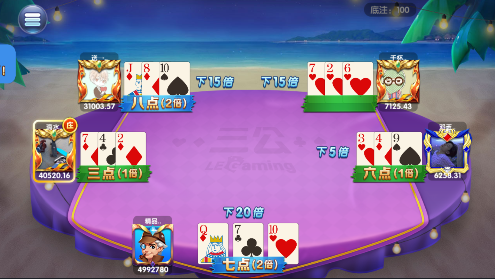 乐博互娱众人乐平台子游戏列表:3D捕鱼,万人推筒子,捕鱼大亨,红黑大战,水果机,通比牛牛,水浒传,绝地求生,九线拉王,德州牛仔,财神到,炸金花,飞禽走兽,三公,豪车飘逸,十三水,大闹天宫,二人麻将,百家乐,明牌抢庄,龙虎斗,摇一摇,抢庄牛牛,单挑牛牛,百人牛牛,急速炸金花。