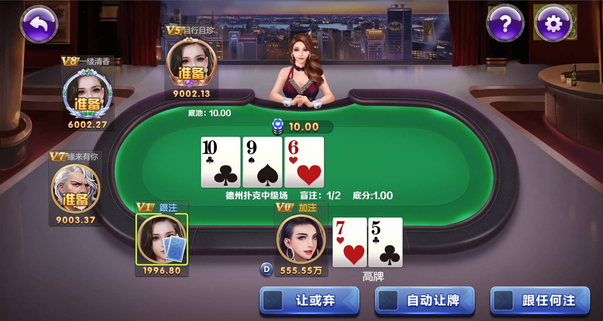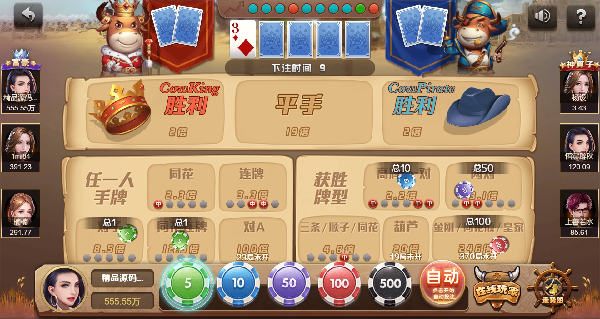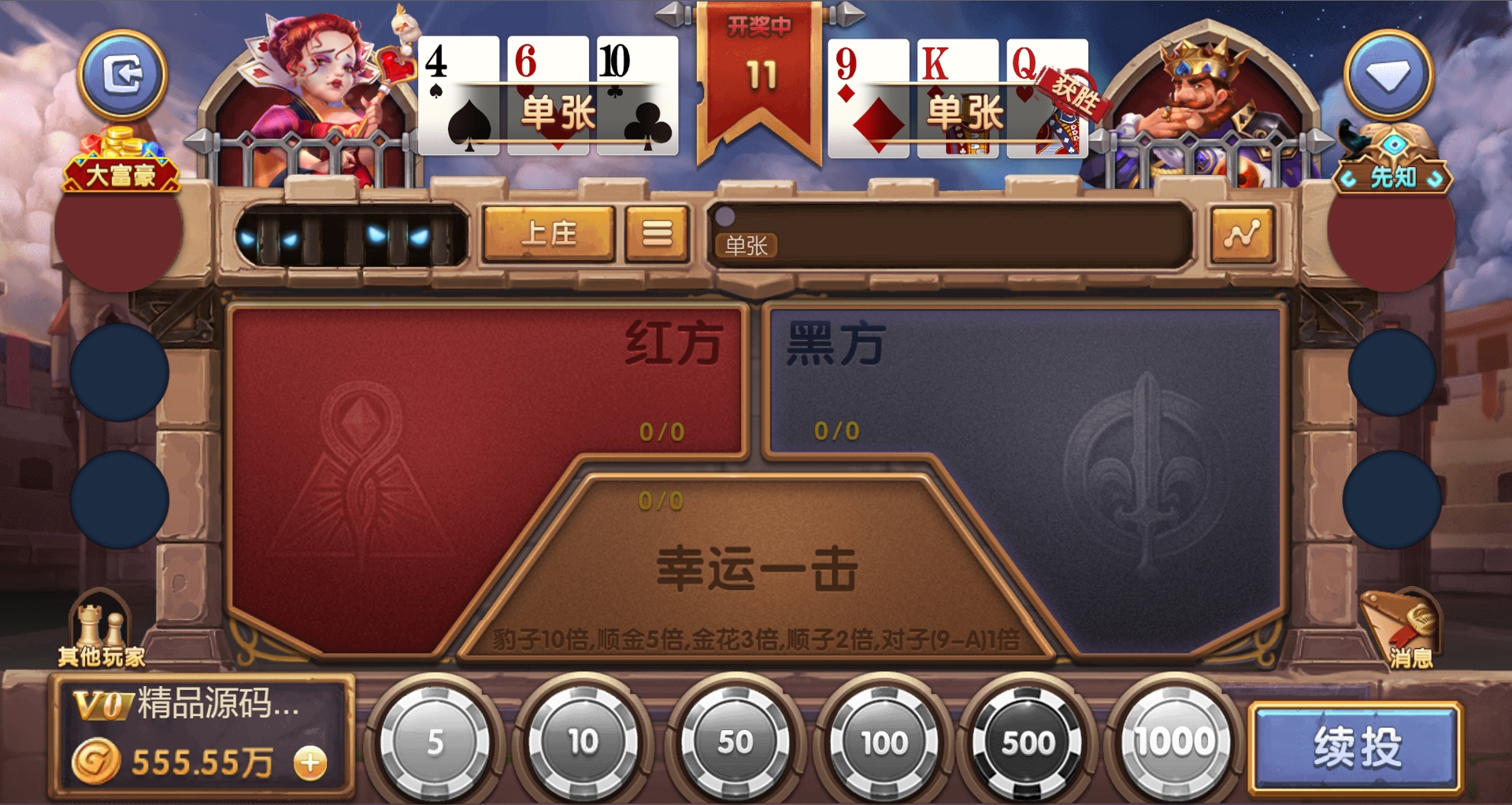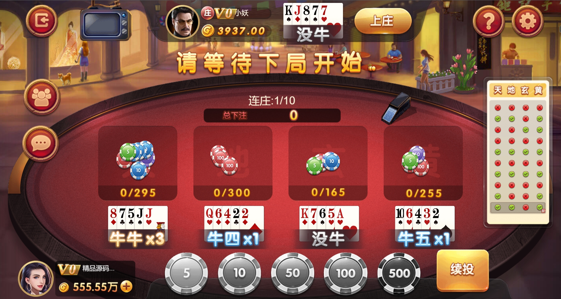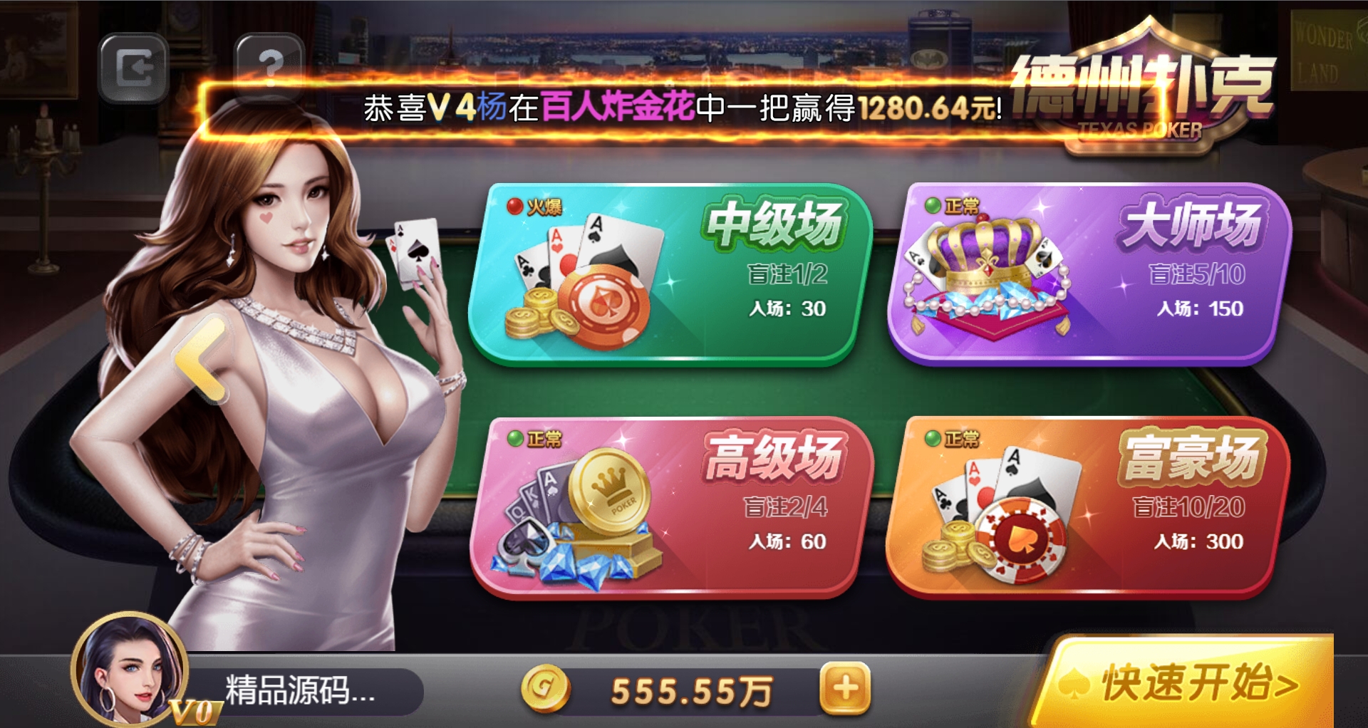 游戏种类:德州扑克 扎金花 十三水 抢庄牛牛 百人扎金花 奔驰宝马 百人牛牛 骰宝 百家乐 百人推筒子 斗地主 红中麻将 跑得快 封神榜 熊之舞