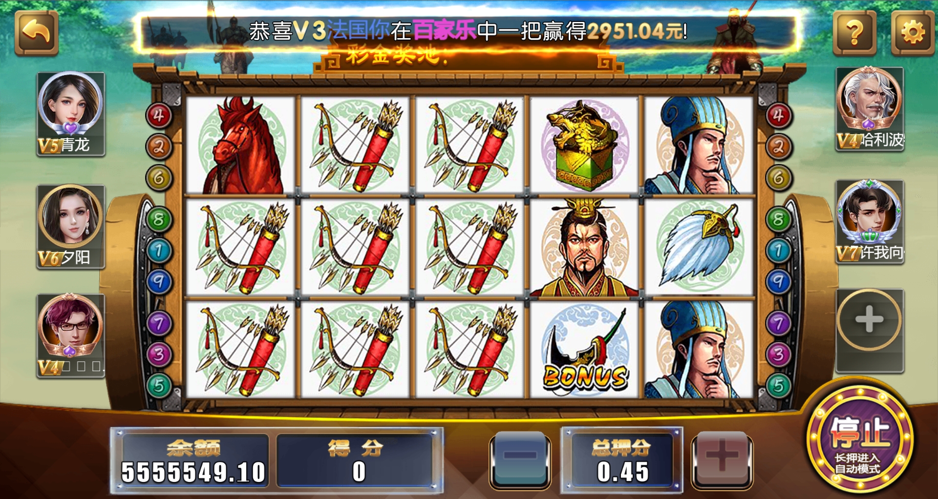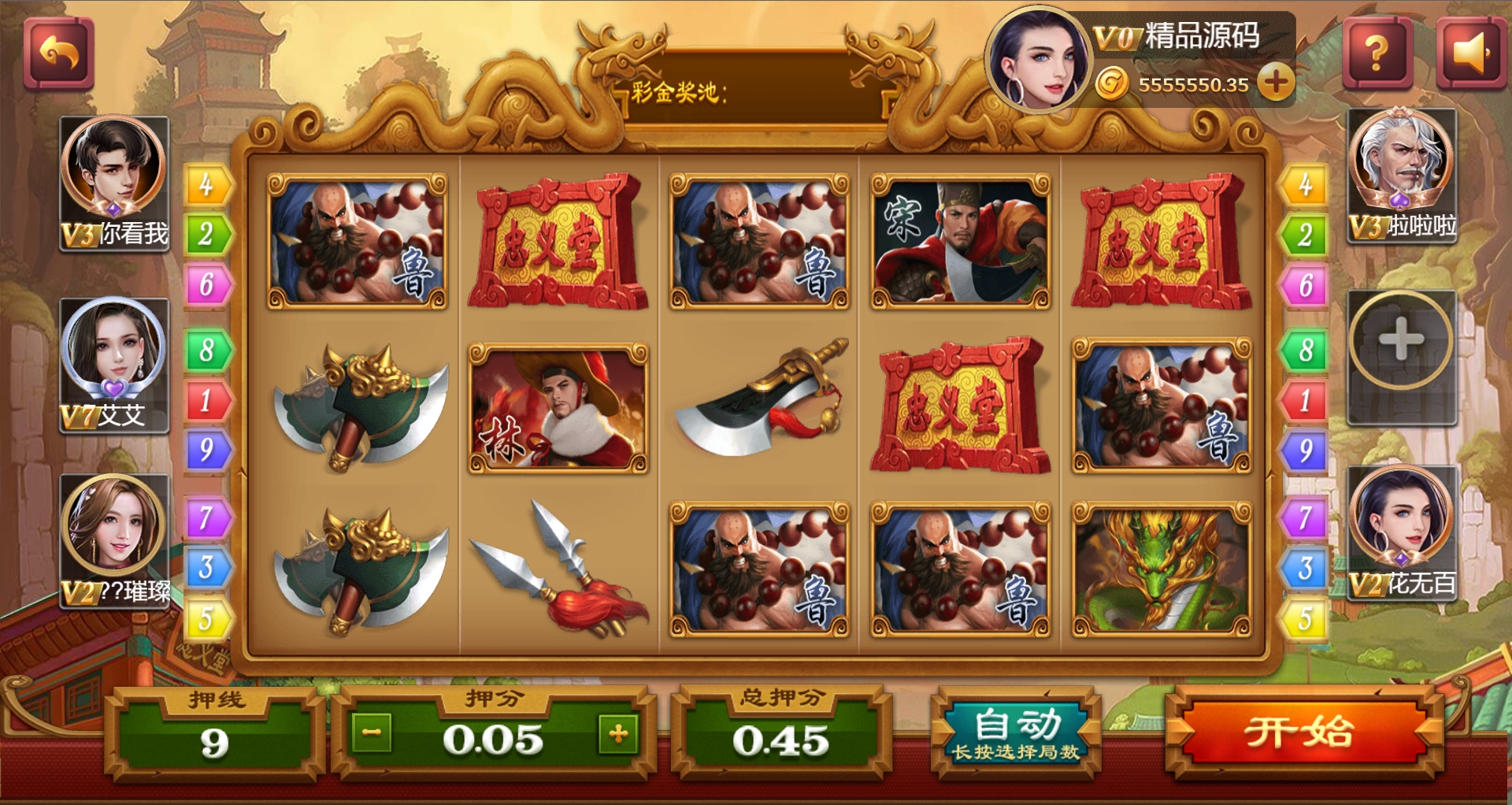 三国演义 财神来了 招财进宝 水浒传 李逵劈鱼 寻龙夺宝 大闹天宫 金龙拉王 ATT连环炮 押宝 九线拉王 德州牛仔 红黑大战 龙虎斗 二人牛牛